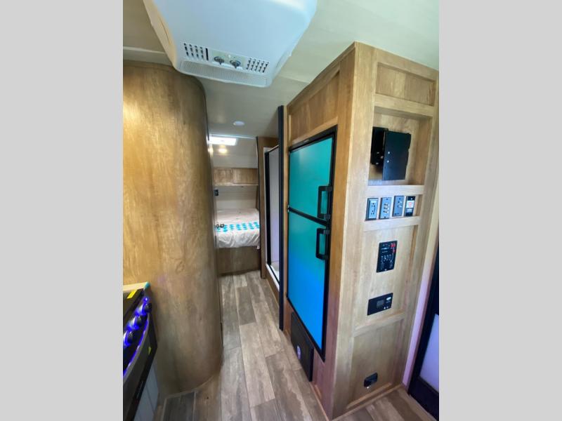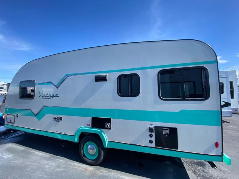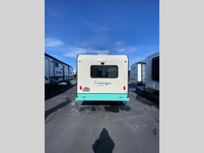 With any Vintage Cruiser by Gulf Stream you will be taken back to the fun of the 50's with vintage exterior graphics and classic interiors. Each model is constructed with a six-sided welded aluminum frame, vacuum bonded sidewalls with Azdel, and a vintage painted bumper you are sure to love. You may like to choose the optional "Woody" Package that includes an Oyster painted A-frame, Hickory Saddle floor vinyl, Southern Pine Sidewalls, and more rustic cabin features. The Vintage Cruiser travel trailers include high-performance vinyl flooring, LED interior ceiling lights, a seamless tub/shower surround, and vintage flat cabinet doors to name a few comforts you'll find throughout. These models are also prewired for roof A/C and come with a standard 20,000 BTU furnace or a 16,000 BTU furnace, depending on the model you choose. Nostalgia is waiting for you with a Vintage Cruiser!