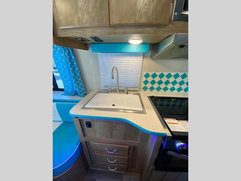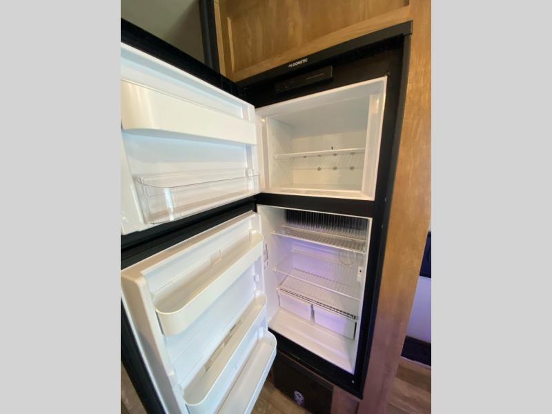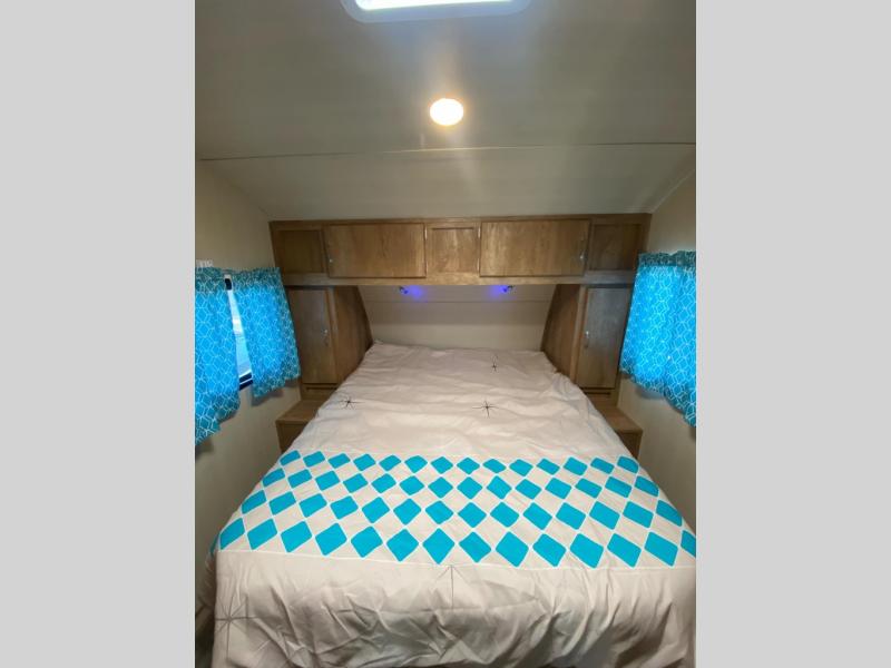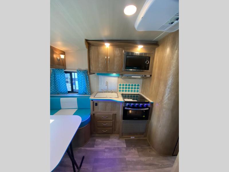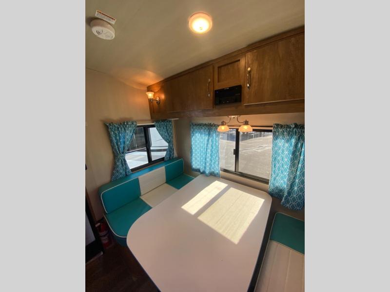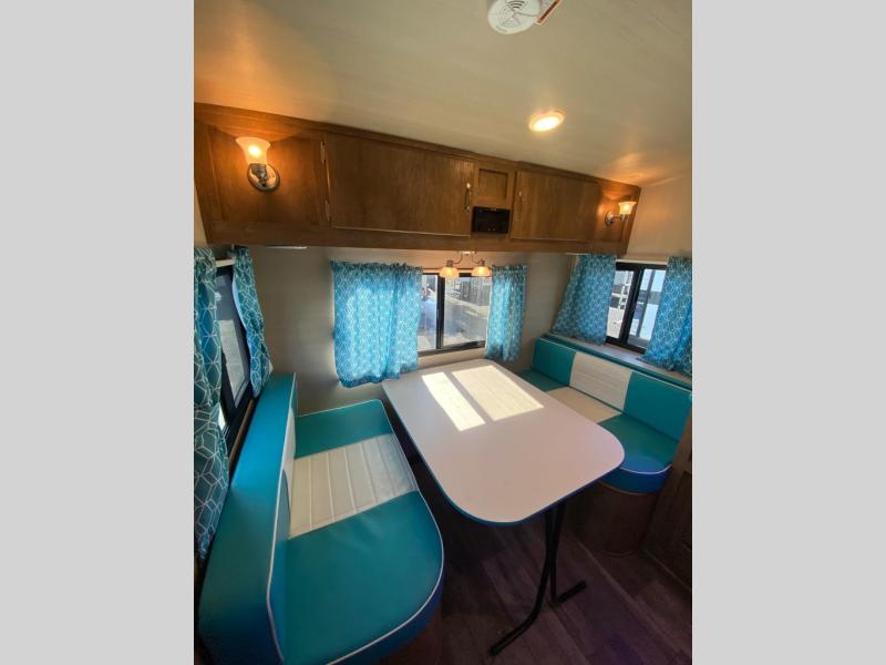 If you enjoy a more classic look for an RV, you'll love this Vintage Cruiser 19ERD. The rear booth dinette is surrounded by windows for bright, open views, and you'll find overhead storage here for dry goods or snacks. The chef of your group will have a two burner cooktop and a microwave oven to prepare meals, and you may want to add an optional 19" LED HDTV to keep your guests busy at the dinette while dinner is being made. The private toilet and sink is right across the hall from the 24" x 36" shower so two people can freshen up at once. How convenient! This model also features a semi-private front bedroom with a privacy curtain for your own space, plus an RV queen bed and dual shirt closets to keep your clothes tidy!