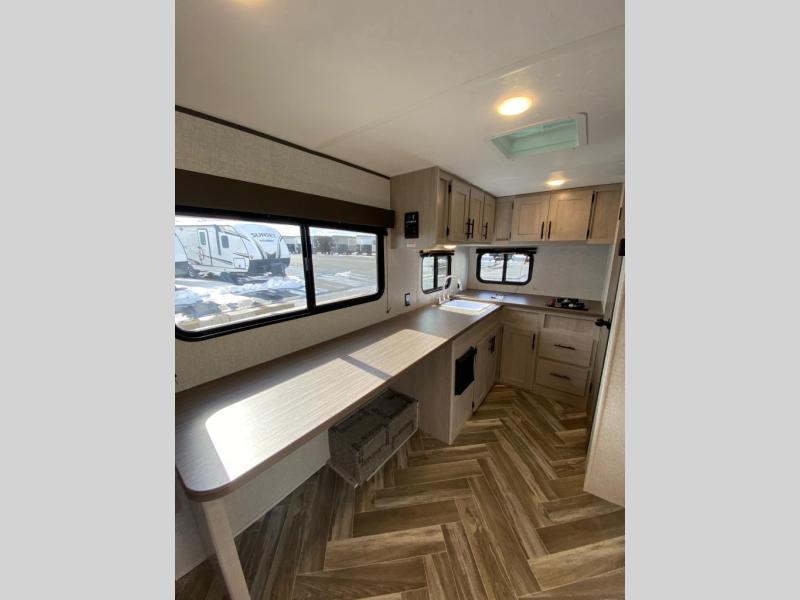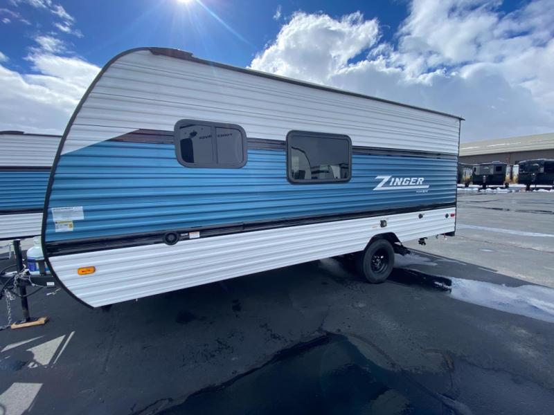 Join the CrossRoads family with a Zinger Lite travel trailer! You'll enjoy an abundance of standard features you would usually find with higher priced travel trailers. Each model features a Super Flex Alpha Roof and front diamond plate for added strength and durability. There is also an electric awning outdoors, along with pass-through storage, rear ladder prep, and a tankless on-demand water heater for added convenience. The interior features pleated shades/mini blinds/fabric window treatments, a 12V refrigerator, comfortable seating and seating spaces, plus plenty of storage for your personal belongings and camp gear!