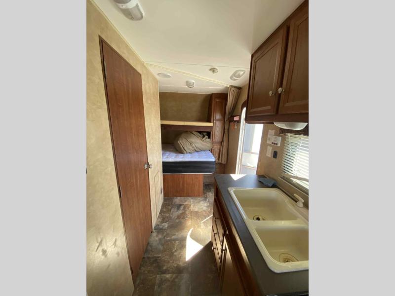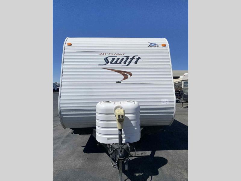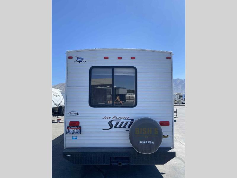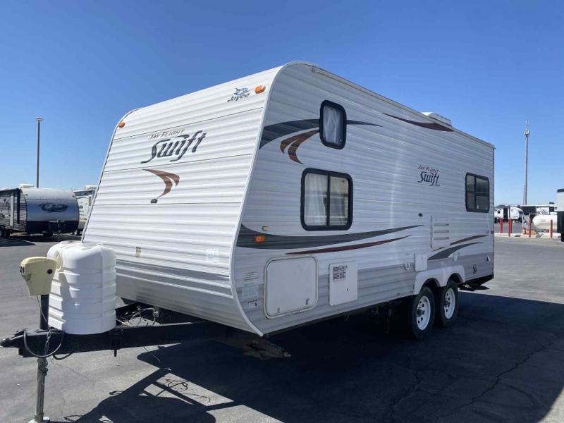 Jay Flight Swift Travel Trailer by Jayco, Rear Dinette, 3-Burner Range, Microwave, Double Kitchen Sink, J-Steel Sofa, Pantry, Refrigerator, Toilet, Lav., Med. Cab., Tub/Shower, Queen Bed, Wardrobe, Overhead Cabinets Throughout, 15' Awning & Much More. Available Options May Include: Upper Bunk Above Queen Bed.