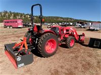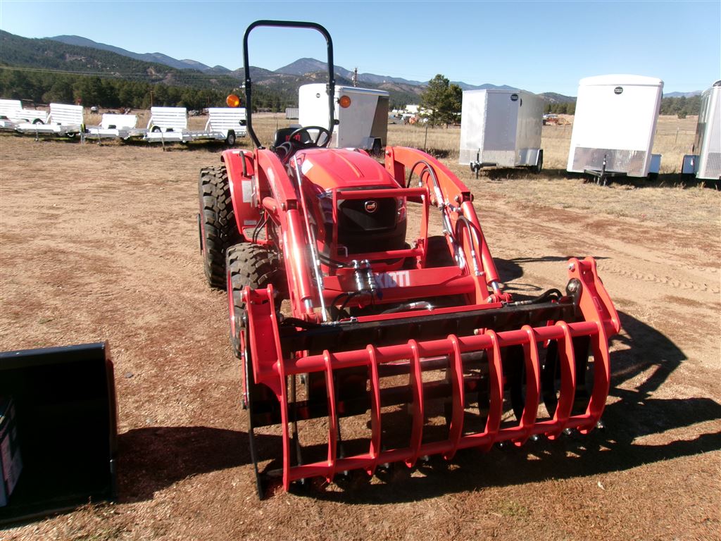 Tractor package includes tractor above PLUS 6’ IronCraft HD box blade, engine block heater, Rim Guard in rear wheels (ballast) and KIOTI's 6 year unlimited hour tractor warranty. The fire mitigation special includes the tractor, loader, box blade above PLUS 66” KIOTI rake grapple (KG4066), third function valve on the loader and a 455 Husqvarna chainsaw with 20” bar (50:1 Fuel and 5 year Husqvarna warranty). Regarding tractor delivery, Hitchin' Post delivers anywhere in Colorado for FREE but if you pick up your package in Lake George we take $500 off the price.