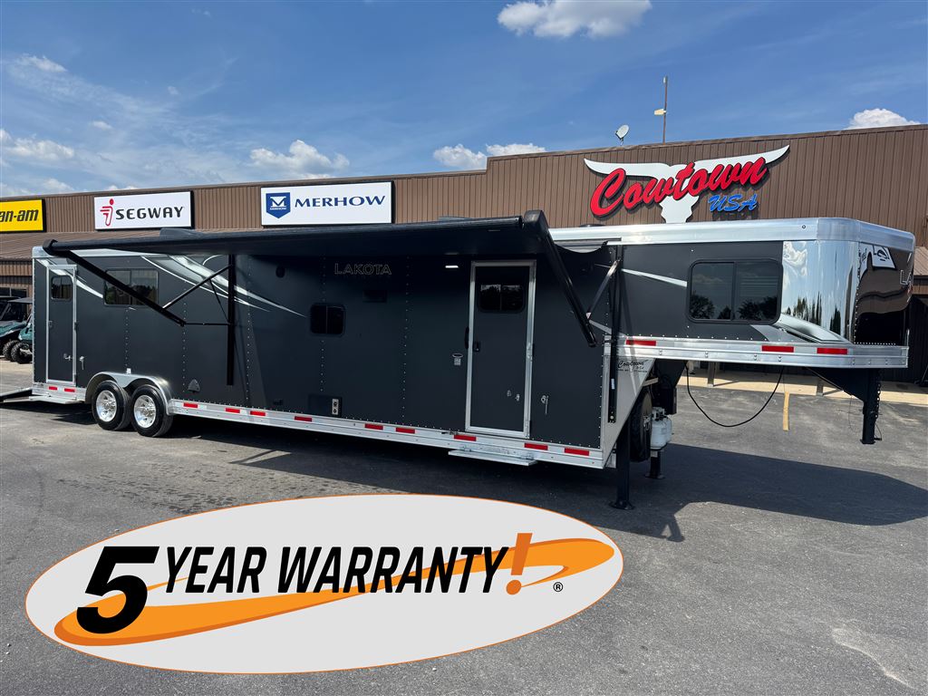 This freshly serviced, pre-owned Lakota Toy Hauler camper trailer is in excellent condition and provides plenty of space. It measures in at a solid 8' Wide and 7'6" Tall with a 14' Garage, 15' Shortwall living quarters, and even a 9' Extended slideout! 573.885.6300