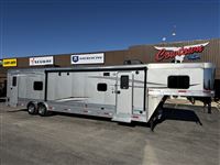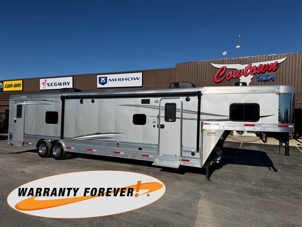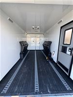 This new all-aluminum Merhow toy hauler trailer is set right at 8' Wide, 7'6" Tall, and quite sizable with a 31' box length composed of a 16' Garage and 15' Living Quarters. 40' Length Overall. 573.885.6300