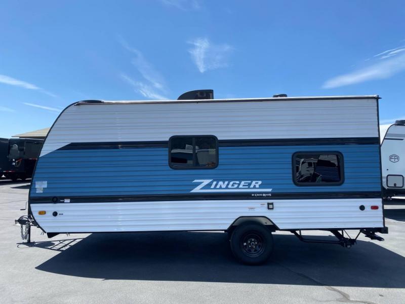 Join the CrossRoads family with a Zinger Lite travel trailer! You'll enjoy an abundance of standard features you would usually find with higher priced travel trailers. Each model features a Super Flex Alpha Roof and front diamond plate for added strength and durability. There is also an electric awning outdoors, along with pass-through storage, rear ladder prep, and a tankless on-demand water heater for added convenience. The interior features pleated shades/mini blinds/fabric window treatments, a 12V refrigerator, comfortable seating and seating spaces, plus plenty of storage for your personal belongings and camp gear!