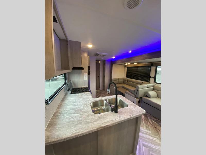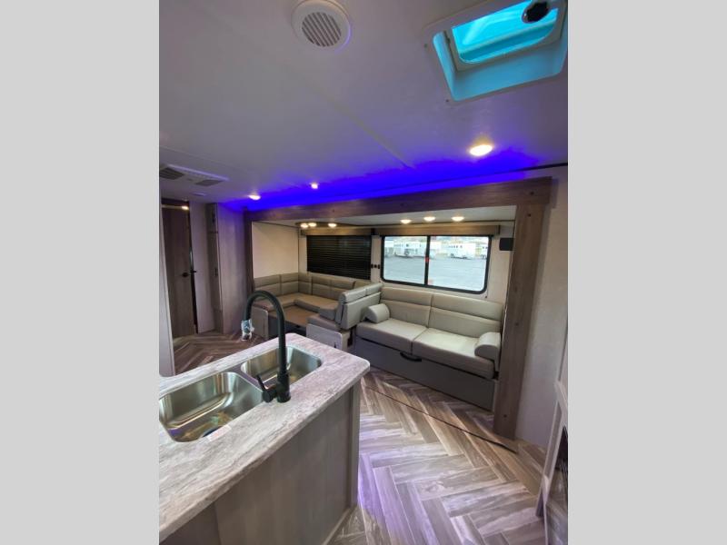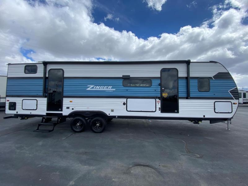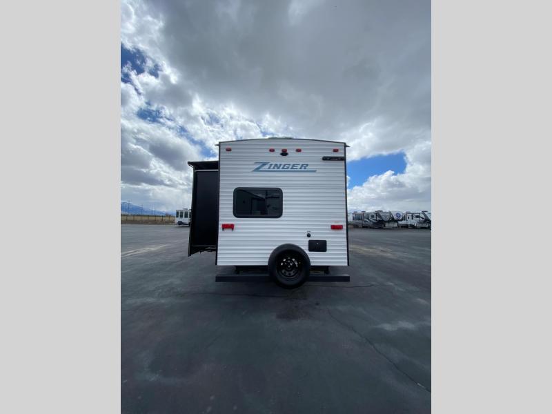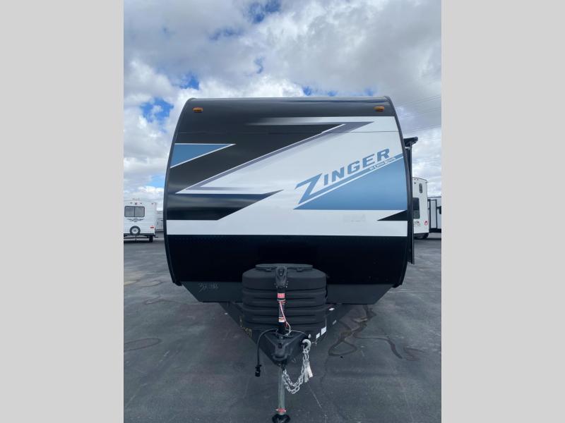 Lead your family to a great vacation getaway in any one of these CrossRoads RV Zinger travel trailers! They feature an aerodynamic front end, Keyed-Alike door locks, Secure Stance entry steps, and exterior speakers with LED accents. The interior of each model includes kitchen backsplash and pressed countertops, along with generous storage, designer valances, and LED lighting to keep your space well lit. You will also appreciate USB ports to keep your electronics charged up, and there is an AM/FM stereo with a Bluetooth soundbar to keep the party going!