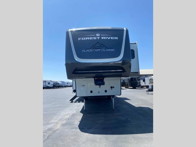 Each one of these Forest River Flagstaff Classic fifth wheels or travel trailers will be your home on wheels! Their quality craftsmanship and attention to detail shines through the surface-coated steel I-beam frame on fifth wheels, the enclosed underbelly, the radius roof with vaulted interior ceilings, and six-sided fully aluminum-framed floor, walls, and roof. Towing your unit will be easy with the torsion axle, Rubber-Ryde suspension, and nitrogen-filled Goodyear Endurance tires. You will even reduce your use of water with the Showermiser water saving system in the bathroom. A few other convenient features you will enjoy include a control panel with WeRV app control, designer headboard and bedding, and an outside hot and cold water port. Come choose your favorite one today!
