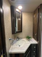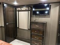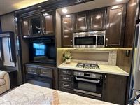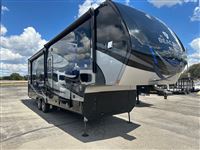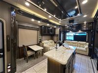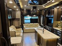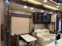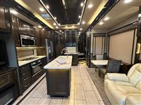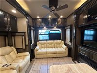 AMAZING 2019 Vanleigh Beacon 34RLB Fifth Wheel RV~ Residential Hardwood Cabinetry~ King Size Bed in Nose~ 32” LED Flat Screen TV~ 40” Electric Fire Place~ Spyder Control Multiplex Wiring with 7” Color Display~ Hanez Travertine Romano Countertops~ Soft Touch Vinyl Ceiling~ Whisper Quiet A/C System~ Equa-Flex Suspension~ Correct Track Alignment~ Slam Latch Doors~ Black Tank Flush~ 12v Tank Heaters~ Slow Rise Day/Night Roller Shades~ 50” LED TV in Living Area~ Fantastic Vent Fans~ Solid Step Four Step Aluminum Entry Way~ Friction Hinge Entry Door with Integrated Shade~ Dual Pane Windows~ Traveler Satellite Prep~ Dishwasher~ Onan Generator~ 8K Lippert Axles~ Full Body Paint Package~ Electric Awning with LED Light Strip~ LED Entry Light and Porch Light~ Dual A/Cs~ Upgraded Mirrored Wardrobes~ Universal Docking Stations~ Recessed LED Ceiling Lighting~ Flush Mounted Windows~ Whirlpool Residential Refrigerator~ Stainless Steel Appliances~ Solar Panel Prep ~ Six Point Leveling System~ Luxury Furniture~ Ceiling Fan~ Convection Microwave~ Dirt Devil Central Vac~ Washer/Dryer Combo