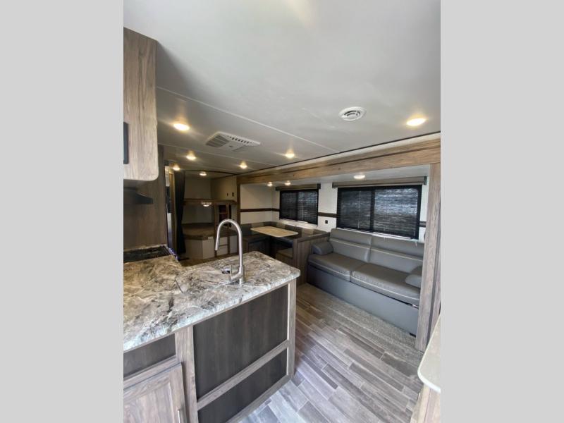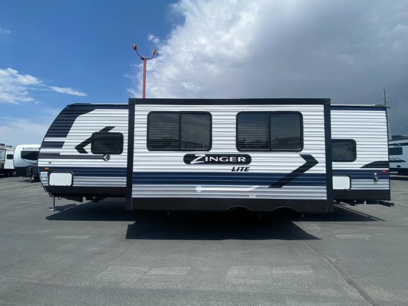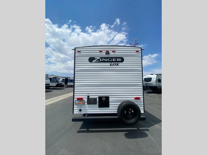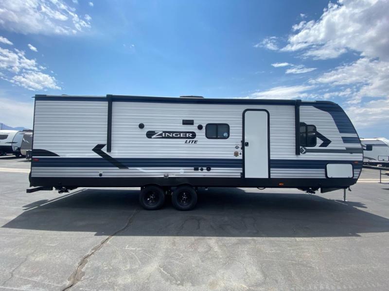 Join the CrossRoads family with a Zinger Lite travel trailer! You'll enjoy an abundance of standard features you would usually find with higher priced travel trailers. Each model features an aerodynamic front end for a more sleek look and better wind resistance when towing. You will appreciate the molded rain gutters with 3" drip spouts, plus Secure Stance entry steps and Keyed-A-Like doors. Having an AM/FM stereo with a Bluetooth soundbar will allow you to listen to your favorite tunes as you camp, and there are outdoor speakers with LED accents if you plan to take the party outdoors. The Zinger Lite also features a 81" interior ceiling height, generous storage space, plus popular options that can be added to further customize your RV. Choose yours today!