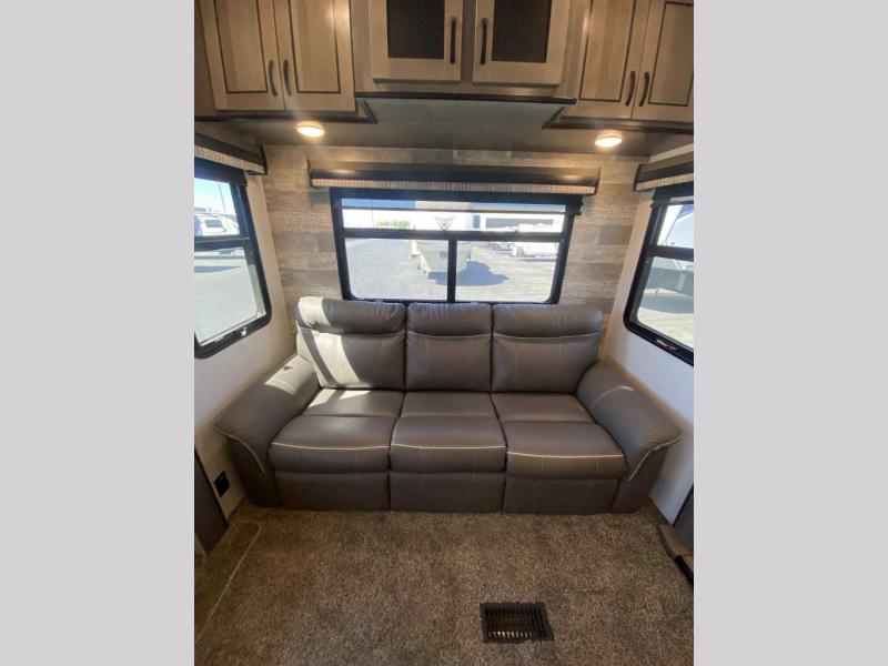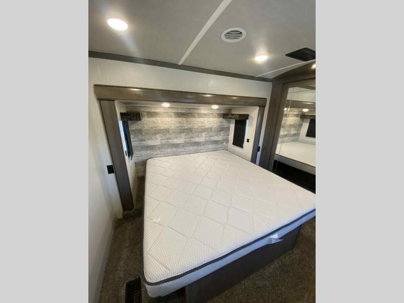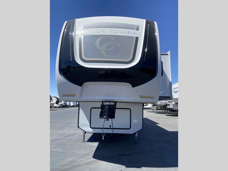 See where the road leads with any one of these Forest River Cedar Creek fifth wheels! They are constructed with the famous Cedar Creek all-aluminum superstructure on 16" centers, a "True" gelcoat exterior, and Silaprene® bonded sidewalls that are resilient, grow stronger with age, and also have an outstanding resistance to UV, heat, cold, moisture, oil/gas, and highway chemicals. The Dexter Performance and Safety Package will give you a peace of mind while driving down the road. You can also bring your furry friend with the animal leash latch, and enjoy your privacy with the Hehr frameless, tinted automotive-style windows. A few other convenient features you are sure to love are the Intervac central vacuum system with a front storage compartment port and interior automatic dustpan, the Congoleum® flooring (carpet mandatory in dining slide), and the USB plug-ins on each side of the king bed. Come choose the model that best suits you today!
