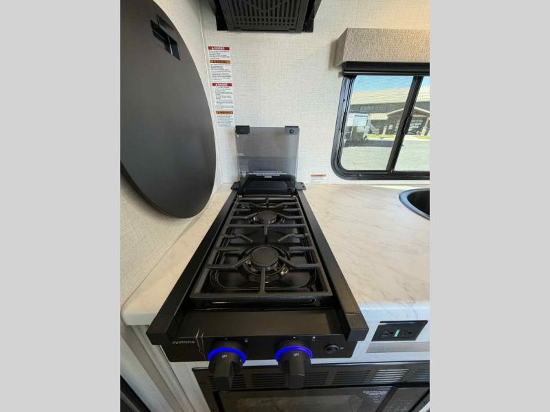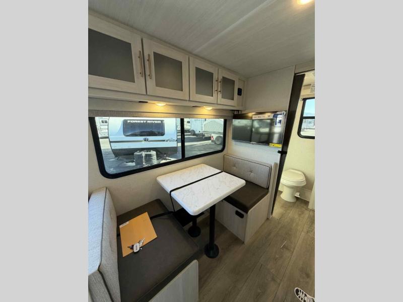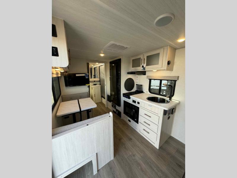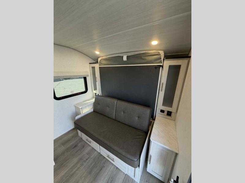 You're going to love all of the conveniences and versatility of this travel trailer! The front Murphy bed can fold away to reveal a sofa which gives you a comfortable place to sit during the day and to sleep at night too. The rear full bath features everything you will need to get squeaky clean each morning, as well as a large wardrobe for you to store your linens. After you have whipped up your best meal with the two-burner cooktop or convection microwave, you can head to the booth dinette and enjoy eating it there comfortably.