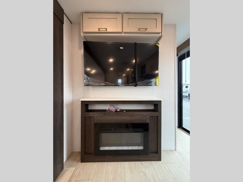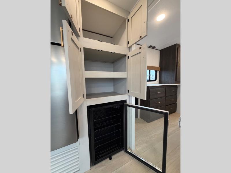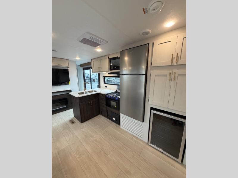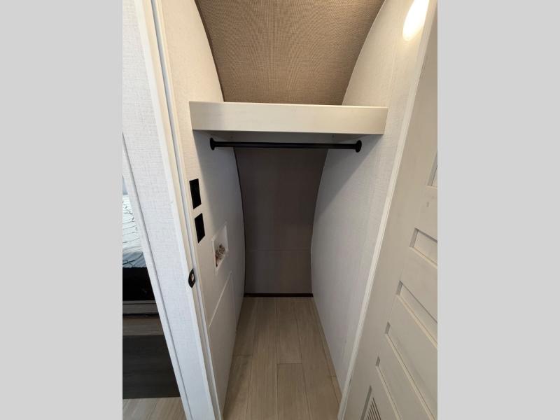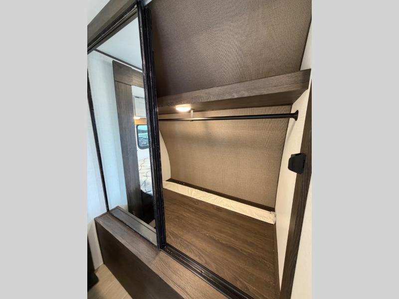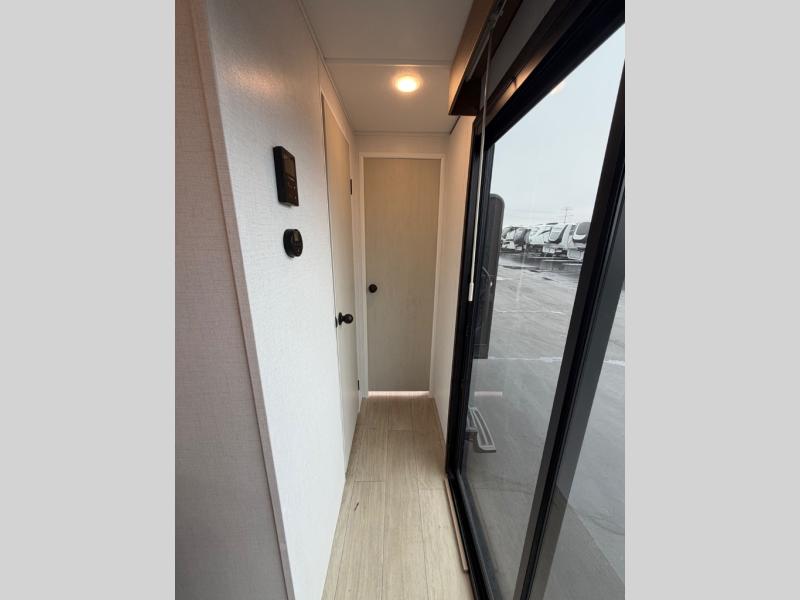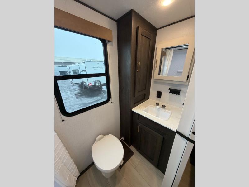 A rear bedroom with a queen bed and its own full bathroom.