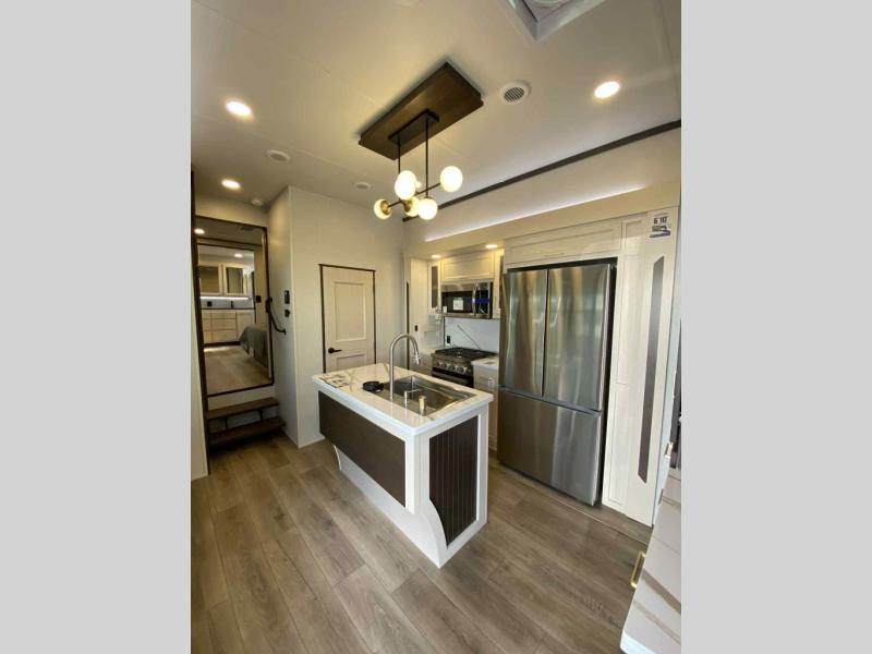 - Residential kitchen island with solid surface counter with flush mount