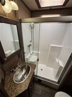 - Full shower with sliding glass door,